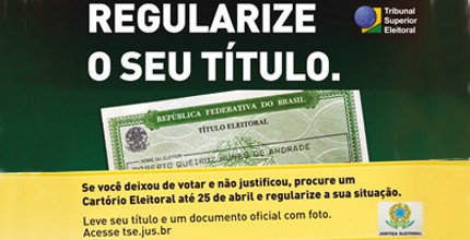 Já está sendo veiculada nas emissoras de rádio e televisão de todo o país a campanha de regularização do título elaborada pelo Tribunal Superior Eleitoral (TSE) e destinada aos que não votaram e nem justificaram a ausência nas três últimas eleições. O eleitor nesta situação que não procurar um cartório eleitoral até o próximo dia 25 terá o título cancelado.